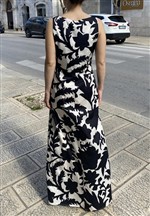 C0491S Abito lungo a fantasia smanicato con scollo a v