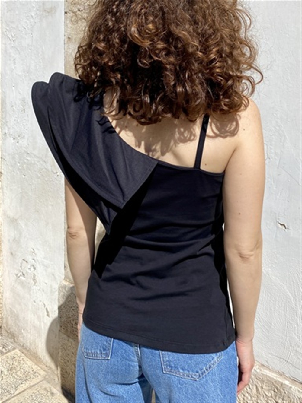 Top in cotone con rouches laterale