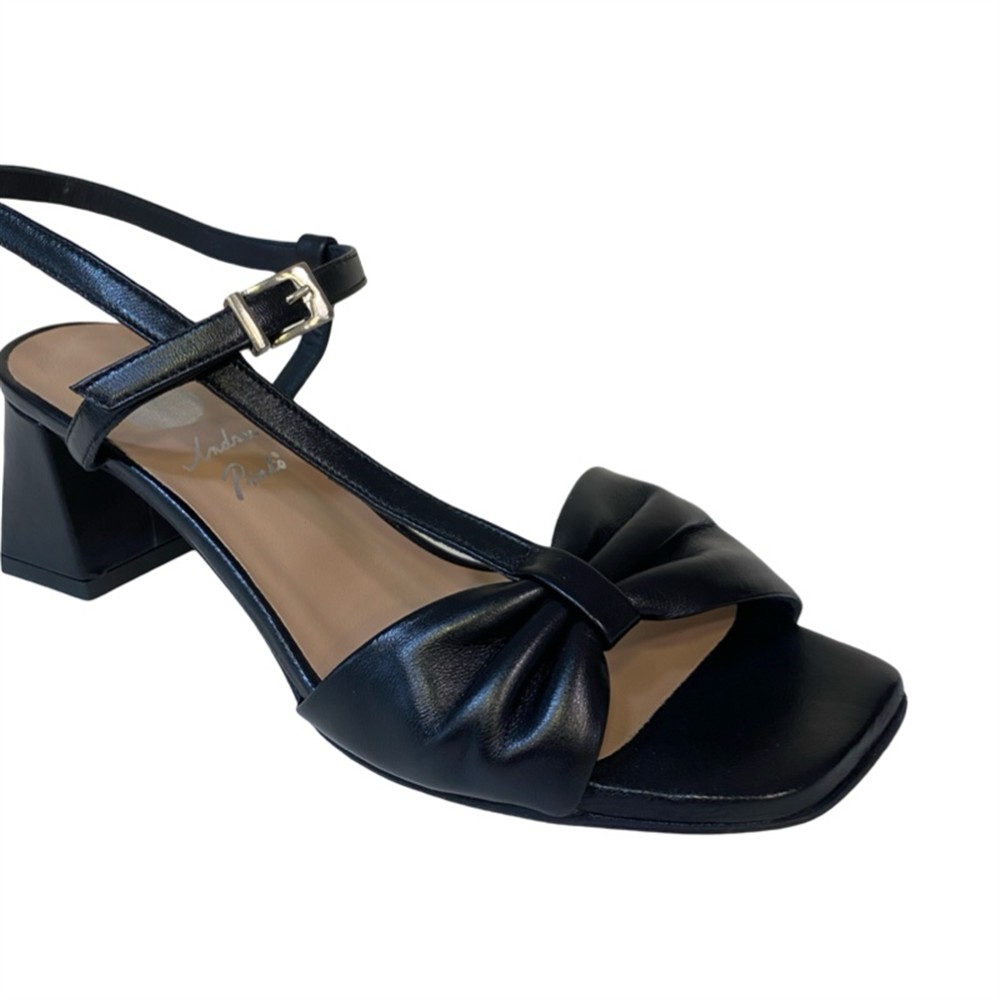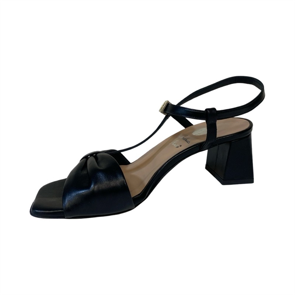 Sandalo nero con tacco 5 cm e fascia effetto fiocco