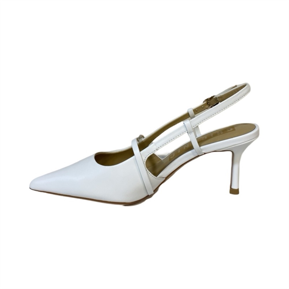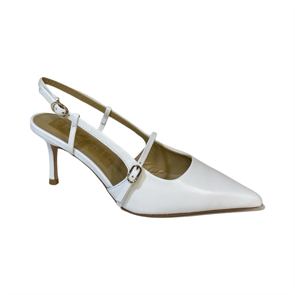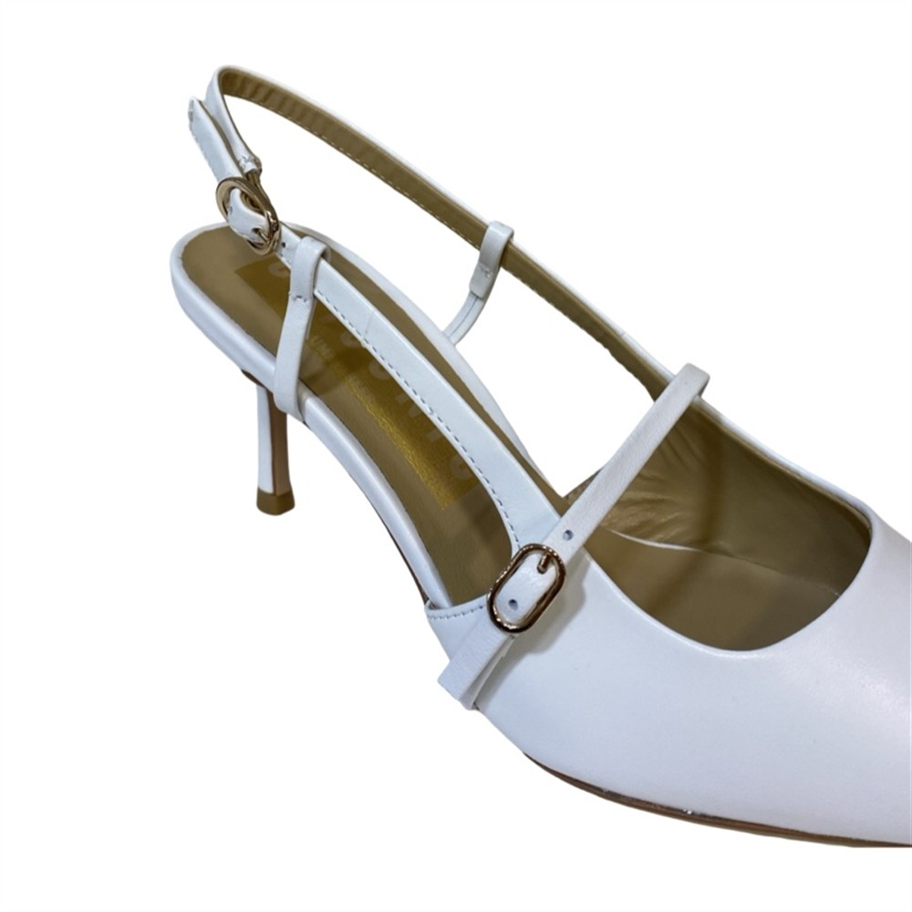 Chanel bianca con tacco 7 cm e cinturino orizzontale sullo scollo