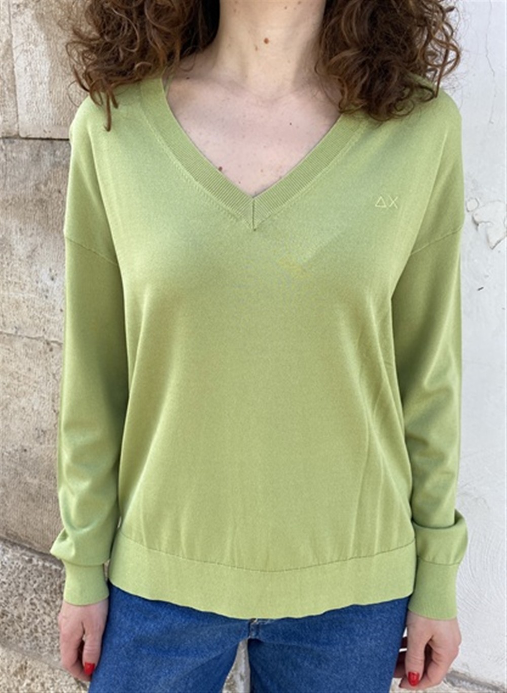 Maglioncino in misto di viscosa con scollo a v oliva