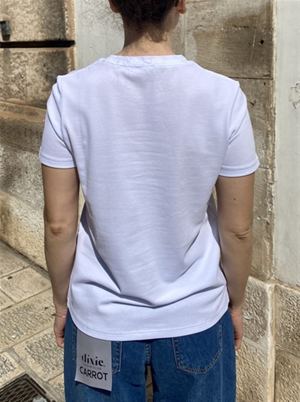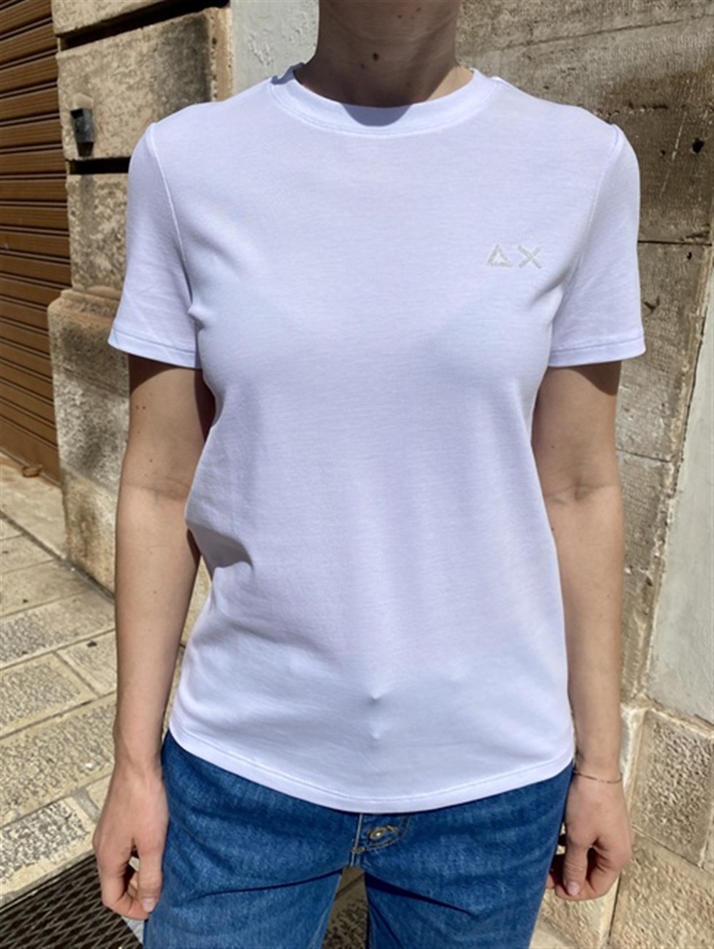 T35237 BIANCO – T-SHIRT ROUND NECK PE SS – T-shirt con logo di strass