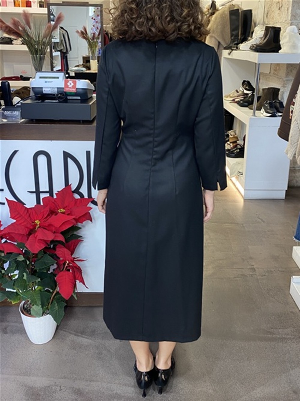 Abito manica lunga con spacco e drappeggio nero